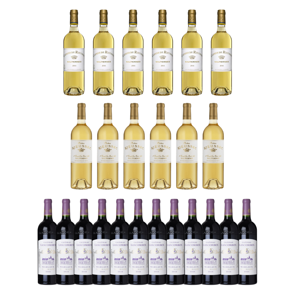 The buyer of this offer will also receive the following: 2016 Chateau Rieussec (6x 750ml), Carmes de Rieussec (6x 750ml) and Chateau Lascombes (12x 750ml).